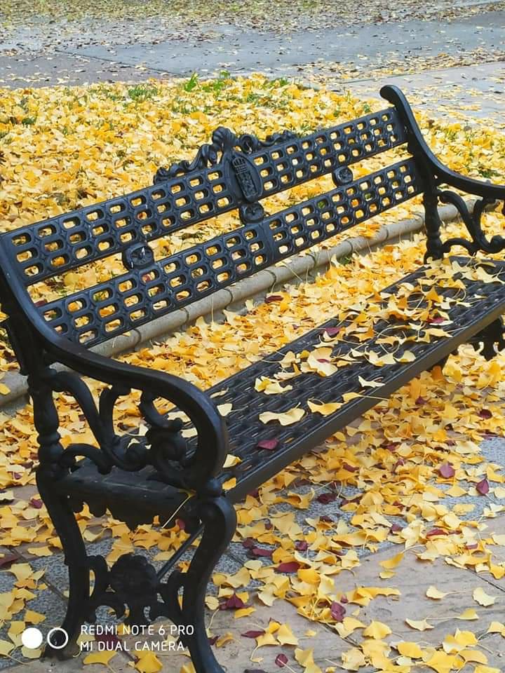 Hojas que perdieron la altura para ser alfombra, caricia de pies anónimos.