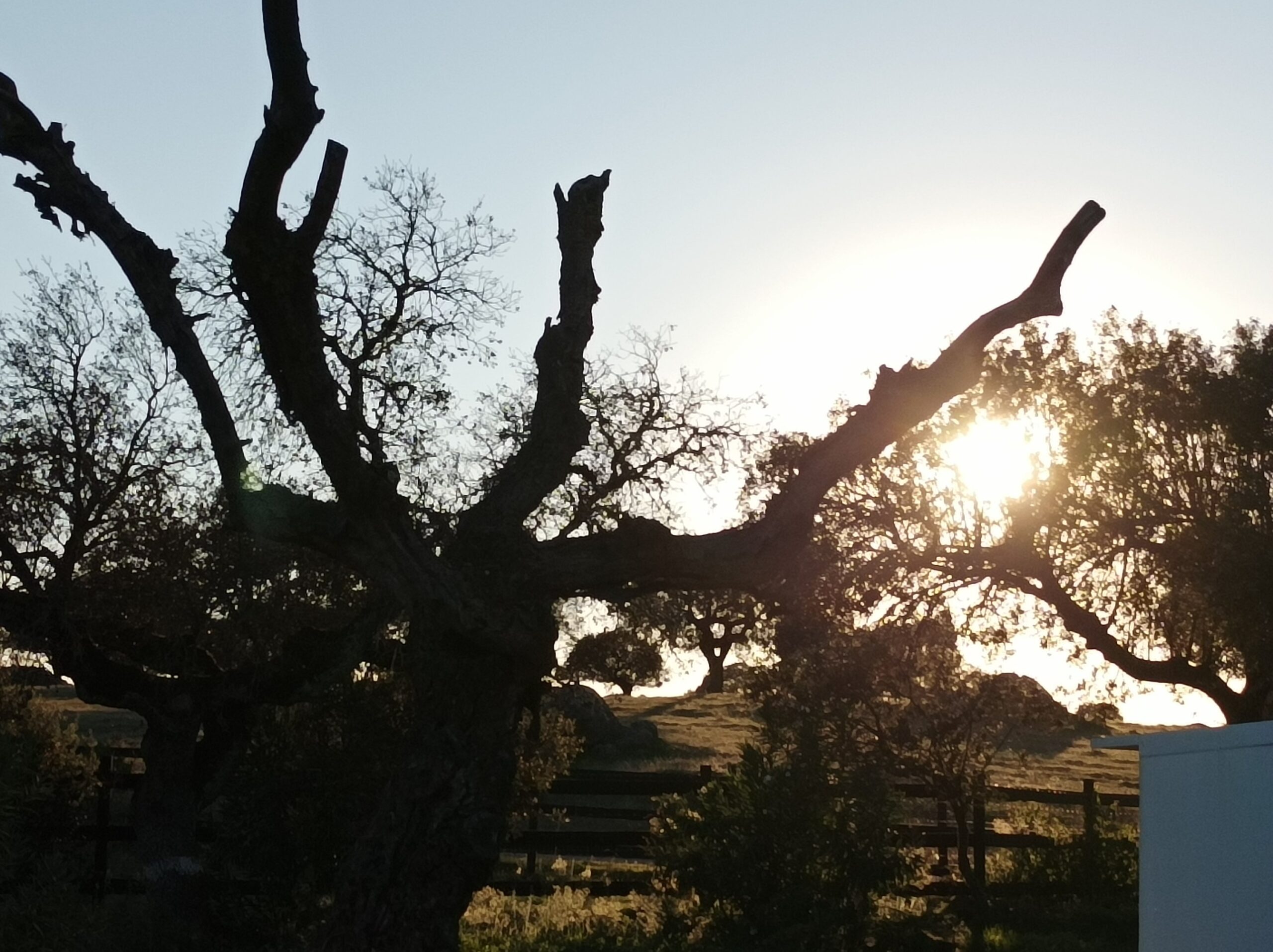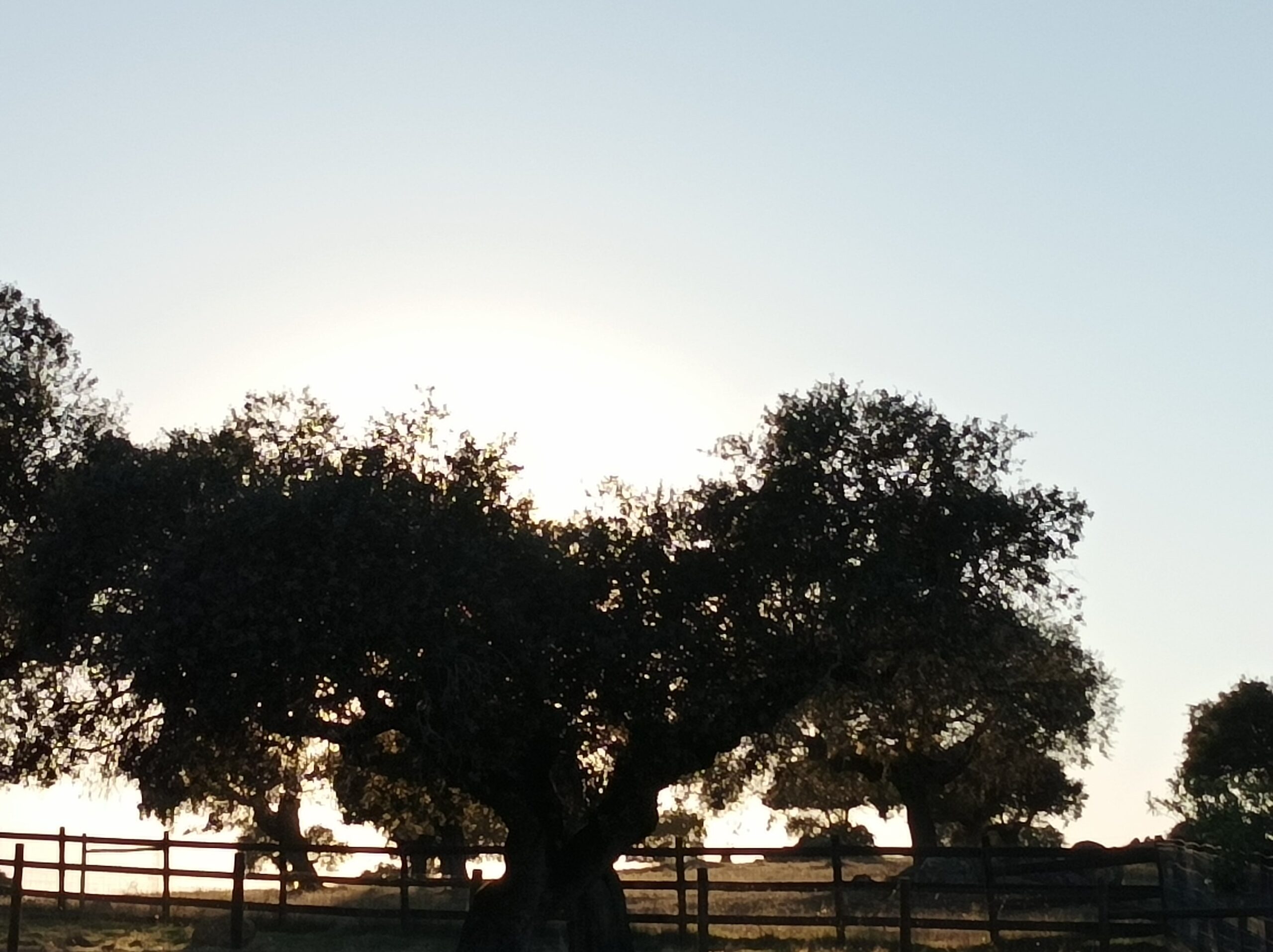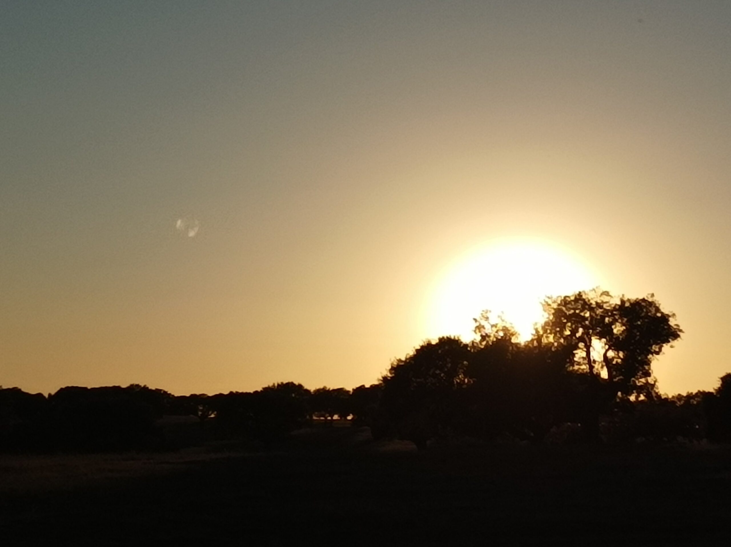 La luna desafía al astro en este paisaje de encinas y sabor de Alentejo.