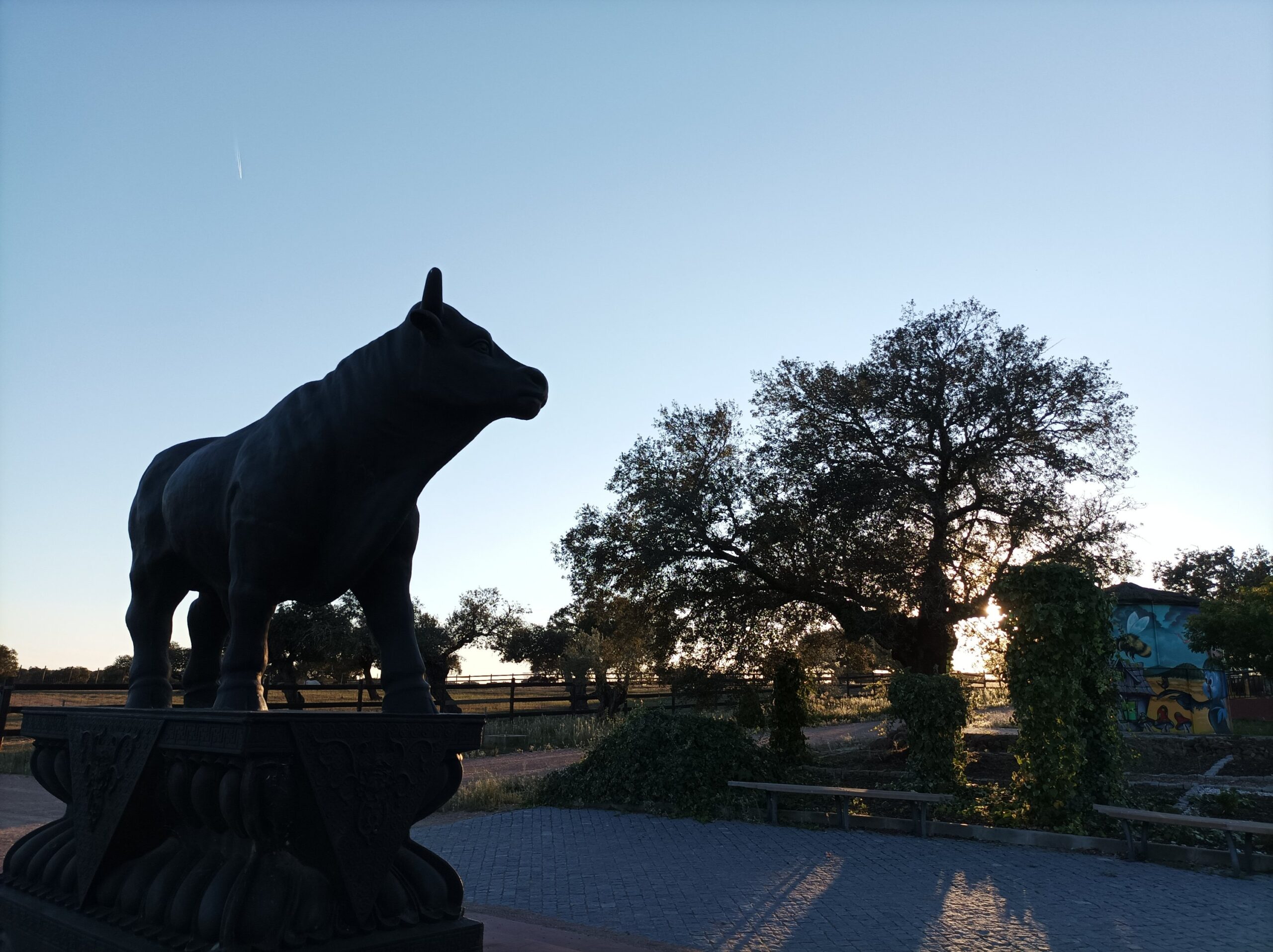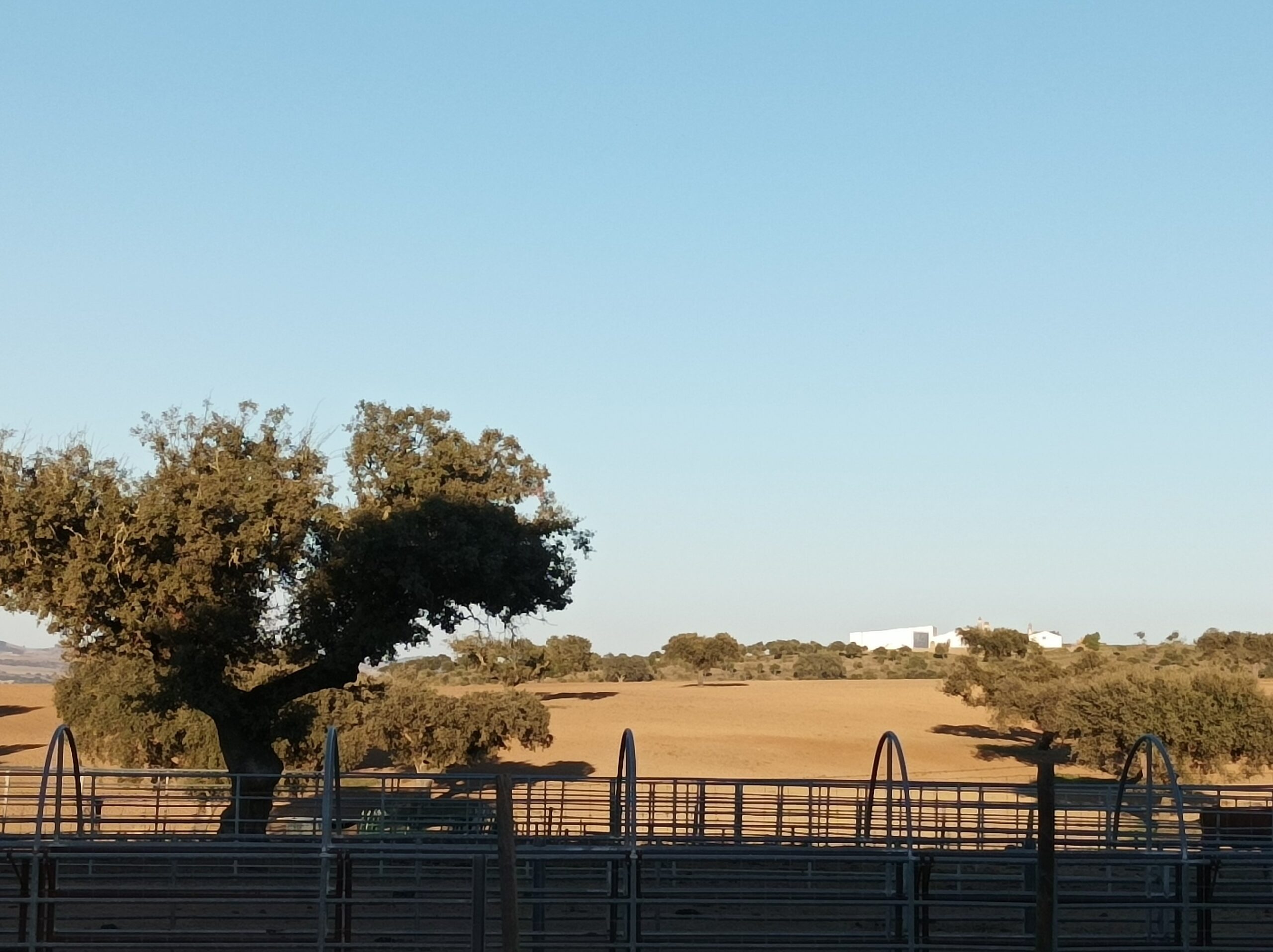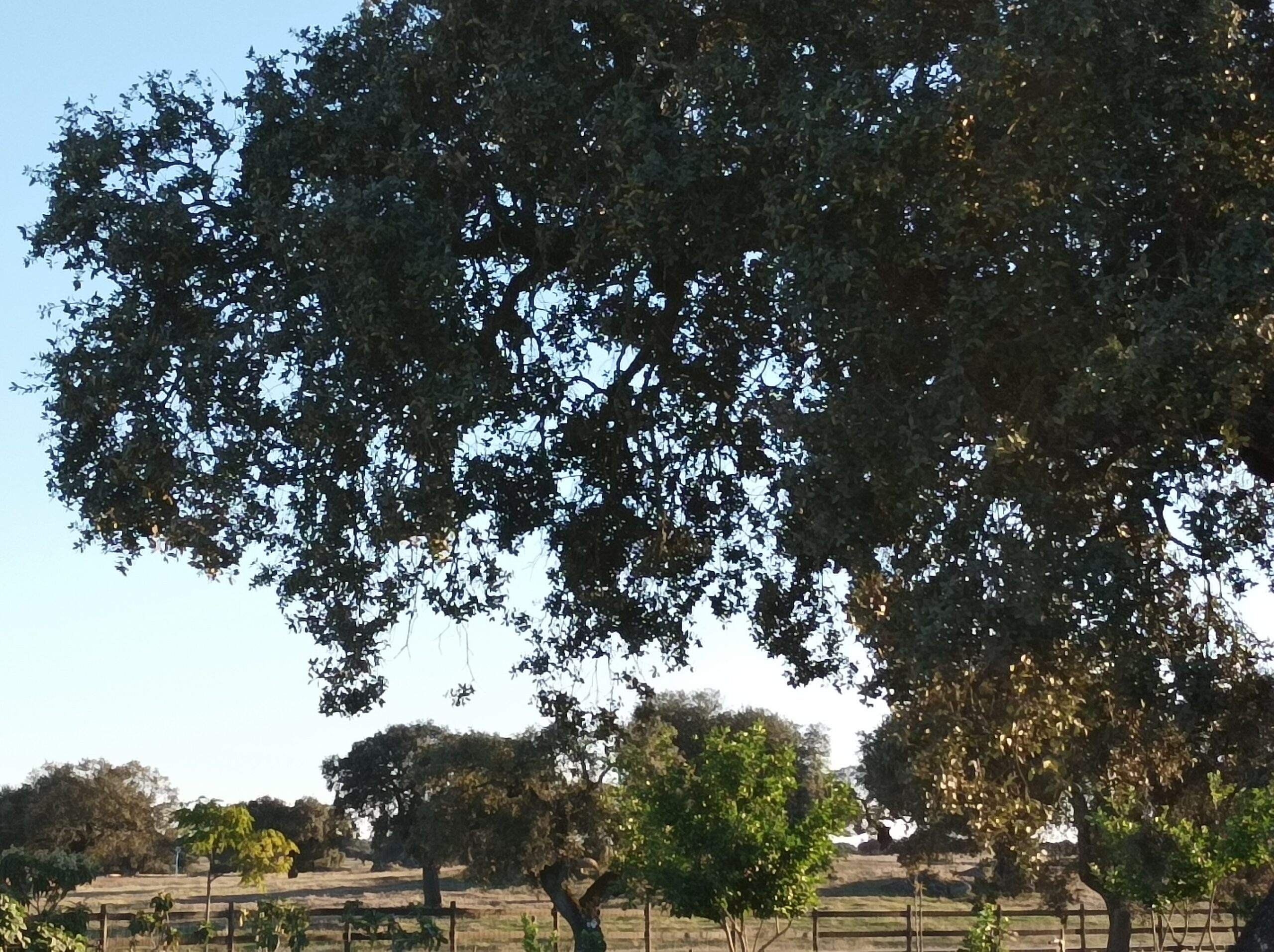 La luna desafía al astro en este paisaje de encinas y sabor de Alentejo.