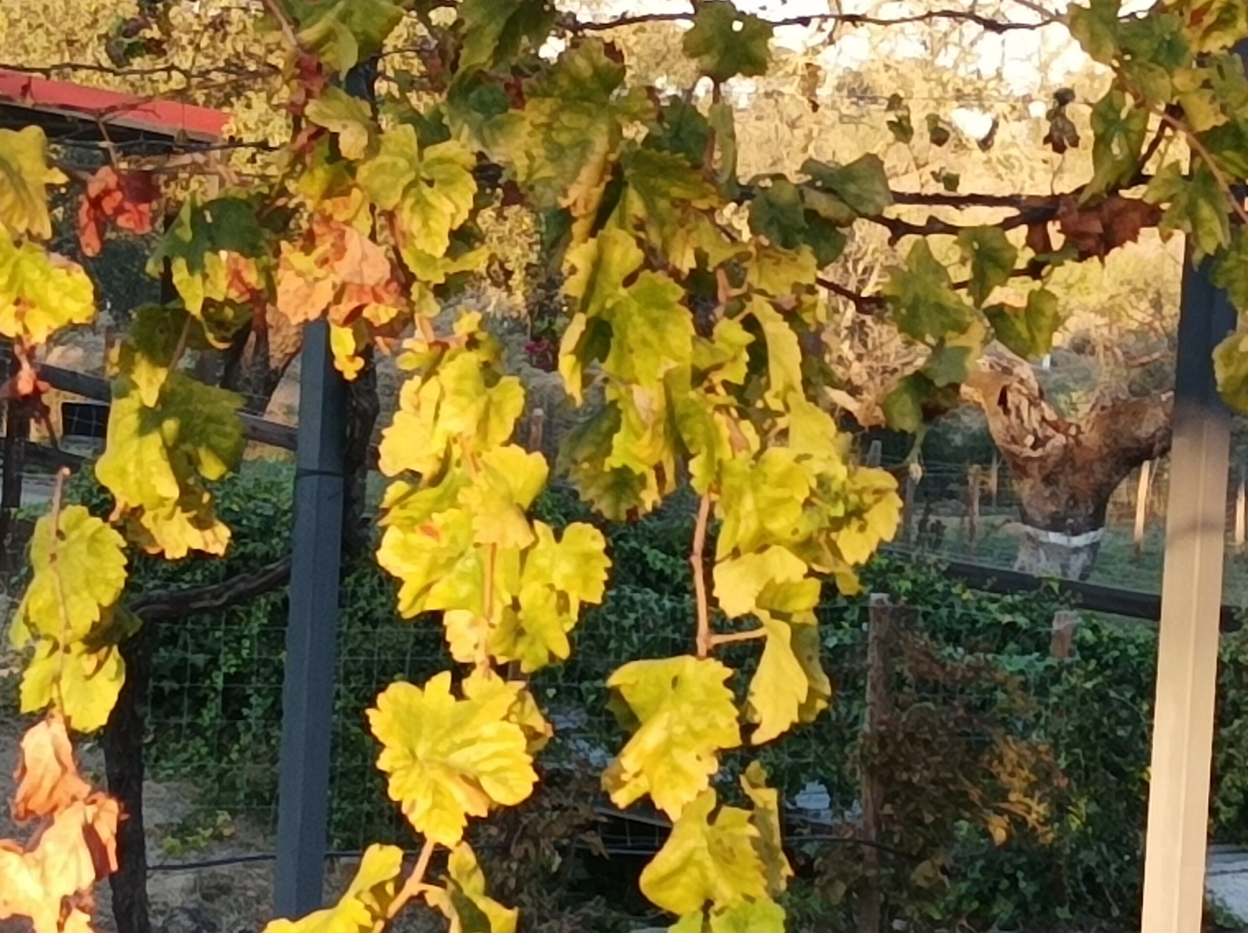 El esplendor del fruto permanece en el verde-ocre de estas hojas agostadas.