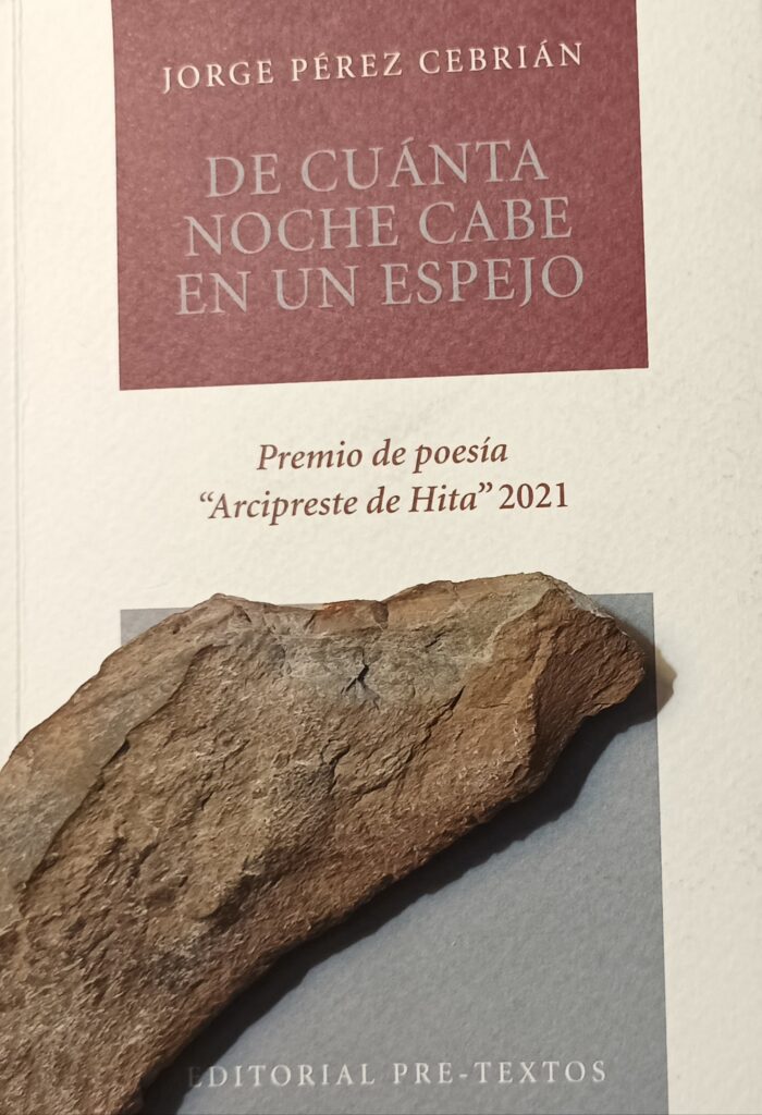 En el año 2021 Jorge gana el XLIII Premio Internacional de Poesía “Arcipreste de Hita “ de Alcalá la Real de Jaén con un libro de poemas: “De cuánta noche cabe en un espejo”. De este tercer libro, que tengo dedicado por él, es del que voy a atreverme a dar unas notas, unos apuntes a modo de reflexión.
