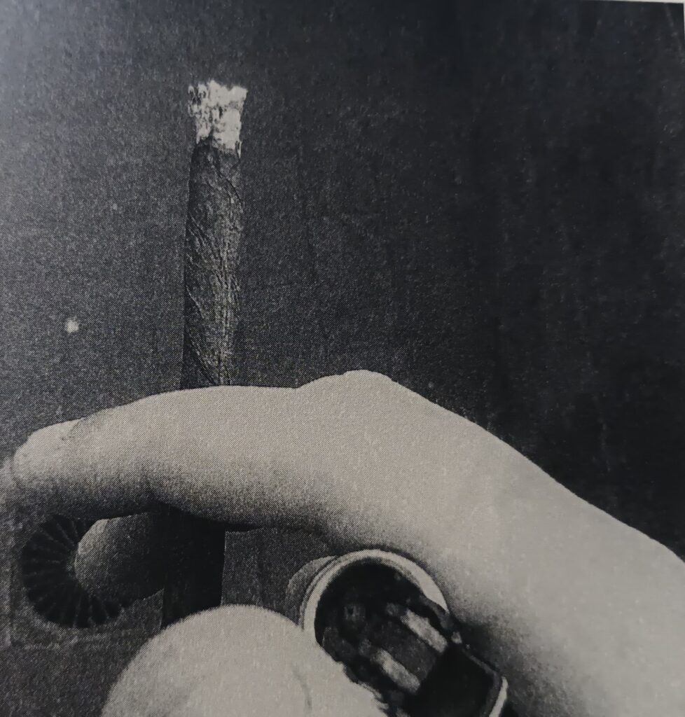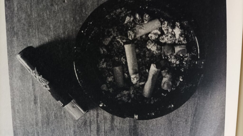 -Las imágenes del cigarro y la del fumar se acercan a la finitud. El icono argumental escogido a lo largo de la obra es la del cigarro: mañana serás ceniza, dice el yo literario mientras apura (su)vida / calada tras calada . La otra, la del hecho de fumar es agotarse, destruirse: “ha sido fumar(me) y esfumarme, sin más.// Y ahí, en el cenicero, reposan/ todas mis ilusiones y esperanzas/ reducidas a cenizas: /los últimos restos de mi pobre existencia “. Brutales afirmaciones que más adelante se convertirán en cenizas: “Mi vida se reduce a cenizas.” Será una breve reflexión mientras estoy fumando donde claramente el yo literario expresa este sentimiento de lo último e inevitable: Cigarrillo en mano/ apurando la vida/ esperando la muerte.” Por otro lado, el gesto de fumar tiene una vertiente muy explícita que es la de “quemar las penas”.