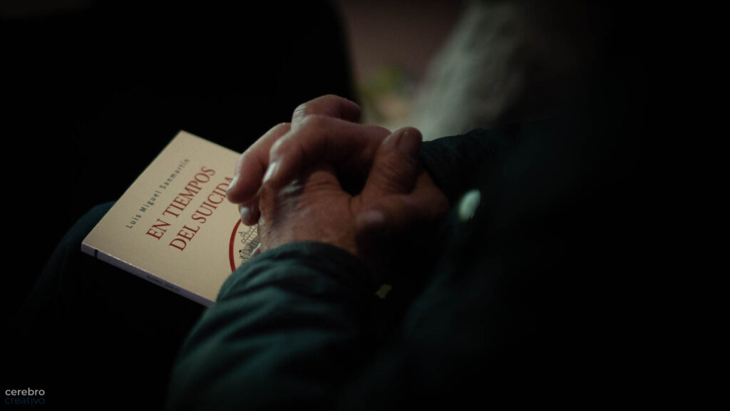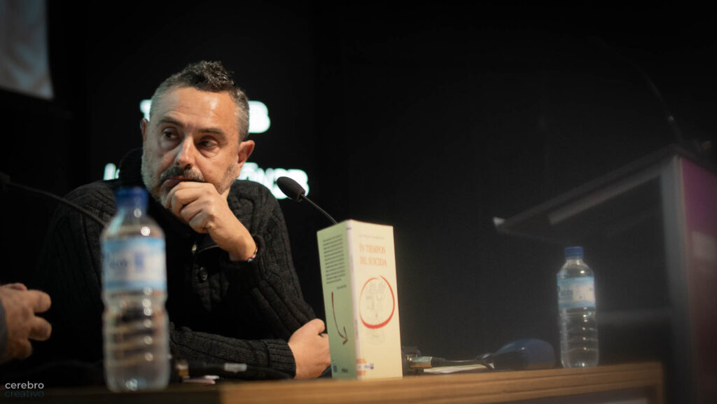 En tiempos del suicida, la obra de Luis Miguel Sanmartín, -dije- es la creación poética donde Luismi «se busca en lo difícil, es decir, se concreta con suma delicadeza en su pensamiento y busca entre las tramas del idioma lo más cercano a la pureza de las ideas para hacerlas expresión.» A mi parecer lo consigue. Y eso fue lo que vimos esta tarde de febrero a través de un diálogo con él.
