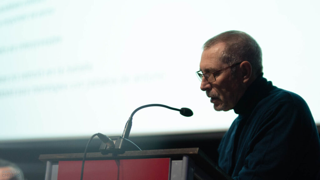 Después del recitado de este poema la pregunta : ¿Podría decirse que este primer capítulo nos pone en la antesala de las propuestas de un mensaje existencial negativo o en la ficción de lo tremendo para evitar lo peor? Luis miguel respondió aclarando antes ciertas expresiones que aparecen en este poema, como la del huerto baldío,.