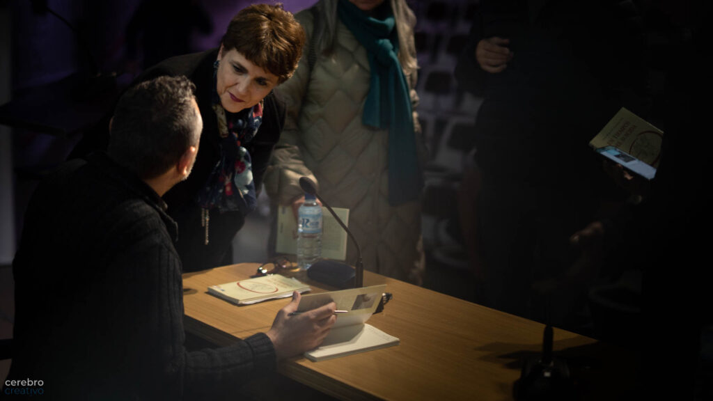 La firma de autor es una de las partes más amable del ritual de estos encuentros de presentación. Autor y lector, por un instante, se funde en la firma y personalizan las letras hasta escapar con este gesto del anonimato.