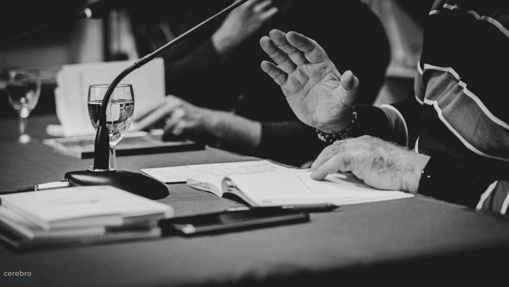 En este evento, ha sido increíble como Alejandro Huyro ha puesto de relieve el gesto de mis manos mientras iba recitando y hablando. Alejandro ha transformado unas manos gruesas y peludas en palabras, en vocablos contenidos en el grito de los gestos que las propias manos trazaban. Gracias por tanta belleza.