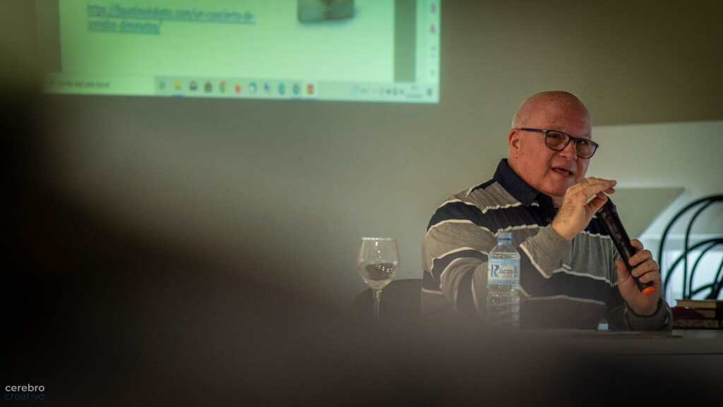 Les cité un segundo libro, UN CONCIERTO DE SONIDOS DIMINUTOS, en el que aparece el tiempo como una realidad que marca el ritmo de las horas a lo largo de un día. Una obra en la que la cotidianidad es la protagonista. Les leí unos fragmentos de esta obra: «Vivo en el último piso, en este lugar donde callo / sin conseguir silenciar los ruidos, el sonido de los gestos,/ las torpezas y los jaques del destino. Vivo donde el tiempo se trasviste/ de pequeños chasquidos que no molestan, / en el último piso, donde los peldaños se acaban / pero no las ganas de soñar y de vivir con ese orden casi perfecto/ que dibujan la libertad y tu amor» (pág. 39). Les subrayé que uno de los capítulos de este libro lleva por título en el dolor del tiempo, en el que se desarrollan los gestos cotidianos de la tarde. El tiempo, el cronos, en estos espacios del libro es una realidad que marca el paso de todo, la fragilidad de los momentos.