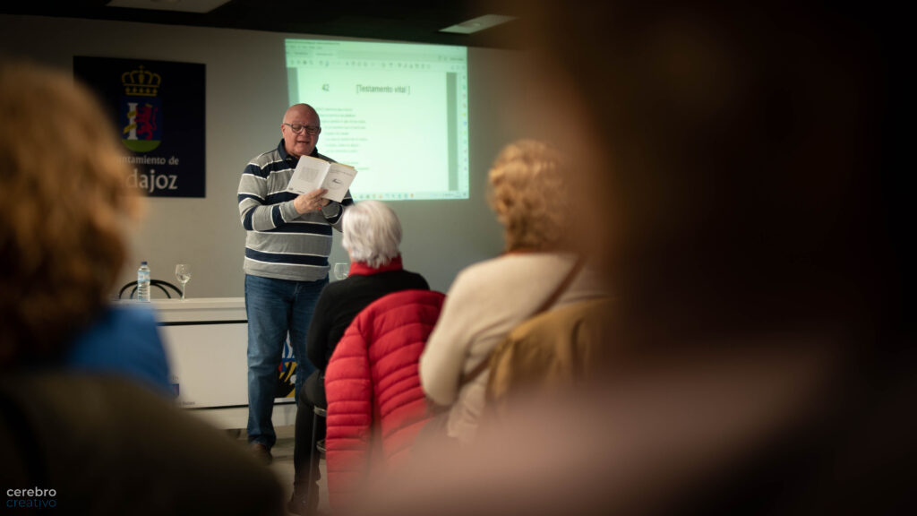 El mes de febrero se ha presentado cargado de presentaciones. La primera de ellas ha sido la del martes día siete en el Centro de Mayores de Santa Marina. Aquí estuve invitado por María Sote, que lleva el Área de atención al mayor del Ayuntamiento de Badajoz. Un maravilloso y mágico encuentro con una treintena de persona para hacer una lectura de mi último libro de poemas «En el alfabeto del tiempo». Cómo agradeceré a María el haberme invitado porque tuve la oportunidad de descender, más allá de una presentación al uso a las claves más existenciales y vivas del libro.