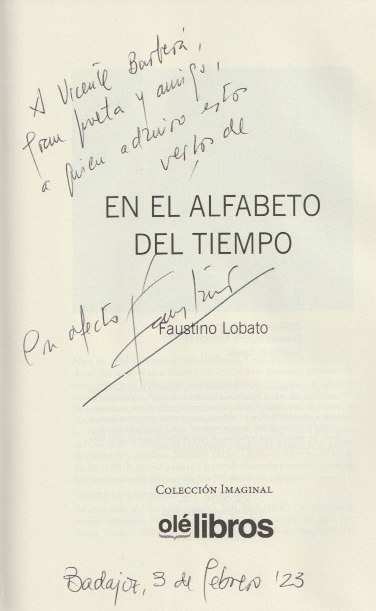 «En el alfabeto del tiempo, parte de una experiencia traumática que podría haber acabado en tragedia y, sin embrago, evoluciona hasta convertirse en un poemario completo, bello, rotundo, oscuro, sí, pero con un final esperanzador. El poeta nos habla del dolor, del paso de tiempo, del silencio…˝. Son palabras de Julio Sánchez Martín escritas en el epílogo. Termina escribiendo: “El triunfo del Instante sobre el Tiempo, de la Poesía sobre el Silencio. ‘Lascia la spina, cogli la rosa, tu vai cercando il tuo dolor‘˝, de Händel, que tan bien canta Cecilia Bartoli.