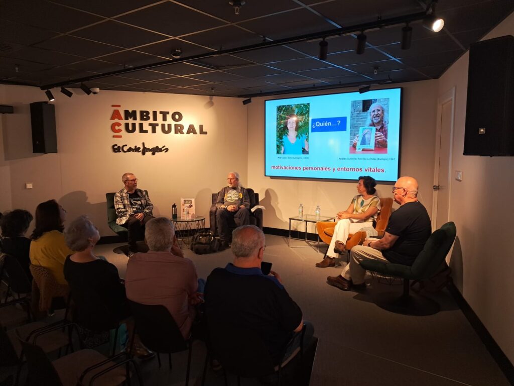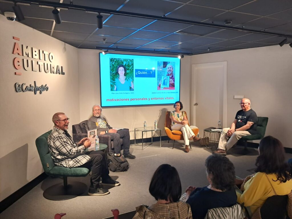 El evento comenzó con unas palabras de bienvenida al espacio de Ámbito Cultural por parte de Teresa Galindo. A continuación, Antonio Castro invitó a los dos escritores a que se presentaran hablando de su propia biografía. Así lo hicieron Pilar y Andrés. Cada uno dijo de donde procedían, uno de La Haba ( pueblo cercano a Don Benito) y la otra de Cartagena (Murcia) y además comentaron,brevemente, sus inicios como escritores y su producción literaria.