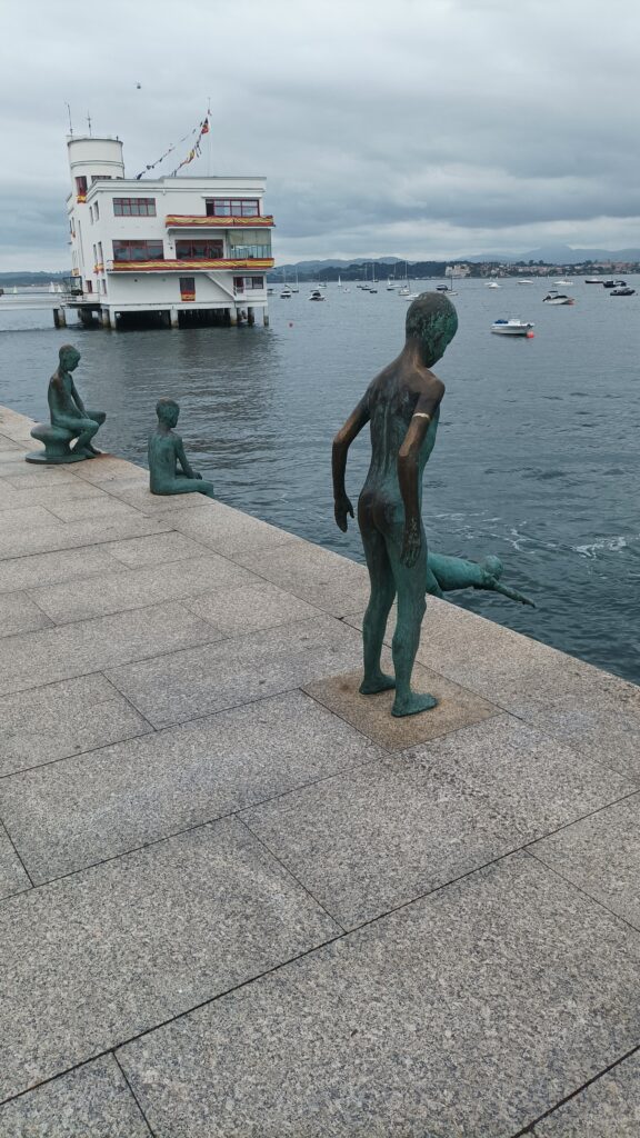 Impresiona la bahia de Santander y lo que más llama la atención es el monumento a los raqueros , a los niños pobres de la ciudad que vagabundeaban por el puerto. Estos saltaban a las aguas para recoger las monedas que turistas y marineros tiraban al agua, como divertimento.