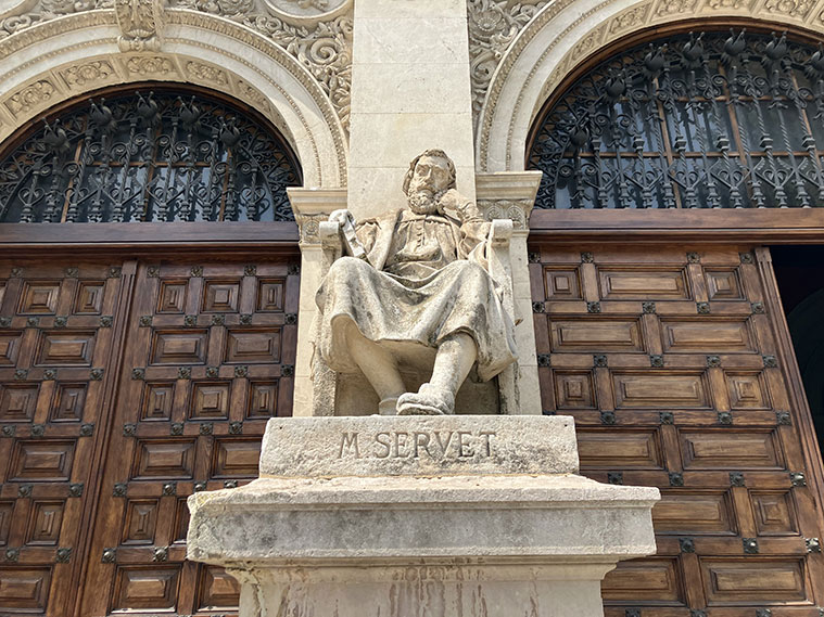 En la plaza de Sagasta, aparece la escultura de Adán que esconde el fruto del error.