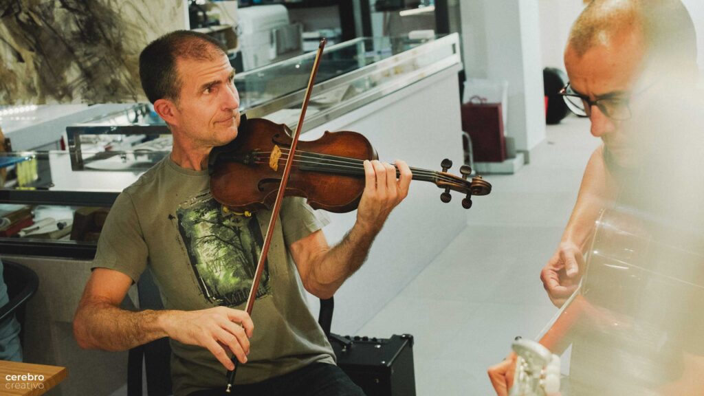 Dentro nos esperaban Octavio y Lauren dos compañeros de Javier. Esta fue la sorpresa. Iban a tocar en el evento.